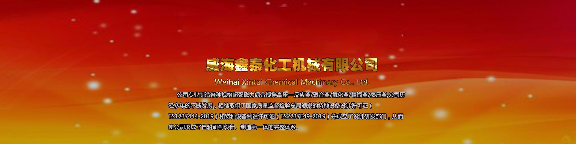 威海鑫泰化工機(jī)械有限公司位于山東威海,本公司專業(yè)制造銷售各種規(guī)格高壓反應(yīng)釜、磁力反應(yīng)釜、不銹鋼高壓釜、不銹鋼反應(yīng)釜、強(qiáng)磁力偶合攪拌反應(yīng)釜及與其配套的壓力罐、冷凝器、塔器等,其結(jié)構(gòu)形式、高中低壓、加熱方式、攪拌形式、轉(zhuǎn)速變化均可按標(biāo)準(zhǔn)或按用戶工藝要求進(jìn)行選配定制,廠家直銷,產(chǎn)品價(jià)格低,型號全。